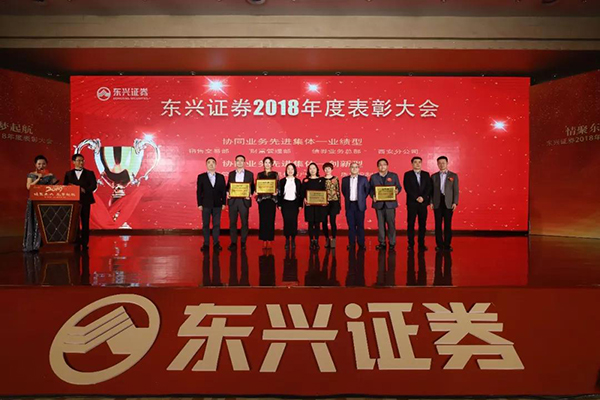 2018年,在中国东方集团党委的正确领导下,东兴证券经营班子齐心协力,公司上下精诚团结、顽强拼搏,涌现出一批攻坚克难、甘于奉献的先进集体和个人。为切实发挥“树立榜样、奖励先进、激励全员”的导向作用,弘扬优秀企业文化,激发广大员工立足岗位、勇于争先、建功立业的工作热情,东兴证券于2月24日召开了表彰大会,对协同业务标兵、协同业务先进集体(业绩型、创新型)、创利明星、服务标兵、东兴十佳、先进集体进行现场表彰。