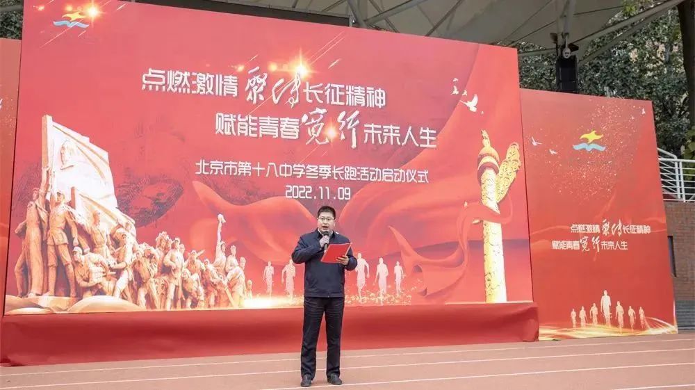 立冬至,寒来访,齐聚跑道欢笑扬,2022年11月9日,北京市第十八中学冬季长跑启动仪式隆重举行。北京市第十八中学始终秉承“聚·宽”办学理念,坚持以学生健康的体为第一培养目标,以广泛开展阳光体育运动为宗旨,通过开展冬季长跑活动,培养学生热爱体育、崇尚运动的健康观念和良好习惯,磨练学生的意志品质,逐步形成强身健体、阳光运动的校园活动氛围。